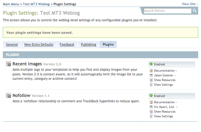 Version 2.01 supports Movable Type 3.3x. Nothing else has changed about 2.01. Version 2.0 has the first support for Movable Type 3.2. While version 1.99 will work under 3.2, version 2.0 has is better integrated with the plugin settings screens and system plugin overview. Default settings can be specified in the interface, drastically reducing the amount of code needed in your templates.