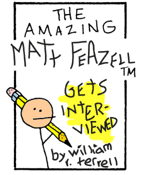 Way back in the year 1995, when the Internet was still something called the Information Superhighway, Image Comics was a budding independent, and a new Star Wars movie was nothing but a dream, I made my annual trek to the Chicago ComicCon. It was around this time that I was beginning to finally move away from my fanboy roots and branch out into the wonderful world of independent comics. This year I discovered Beanworld, Cerebus, and a little mini-comic known as Cynicalman. Cynicalman belongs to the wonderful world of mini-comics, an underappreciated, but truly enjoyable area of comics. There are countless mini-comic creators making their own comics, usually about 1/4 the size of normal full size comics, that you can find in the "artist alley" of any comic con. This was the case with Matt Feazell, whom I stumbled upon in the alley that year. I had heard about his work before and so I ended up purchasing a small stack that day. Since then, I've checked out the mini-comic work of many others, but it is Matt Feazell's mastery of the mini-comic that always seems to bring me back. I've found his work to be consistently funny, engaging and deeply rewarding. Now, five years later, he is still making mini-comics and also working in a field that fits his talent perfectly: The weekly comic strip. I recently talked to Matt about the strip and his current mini-comics work. |